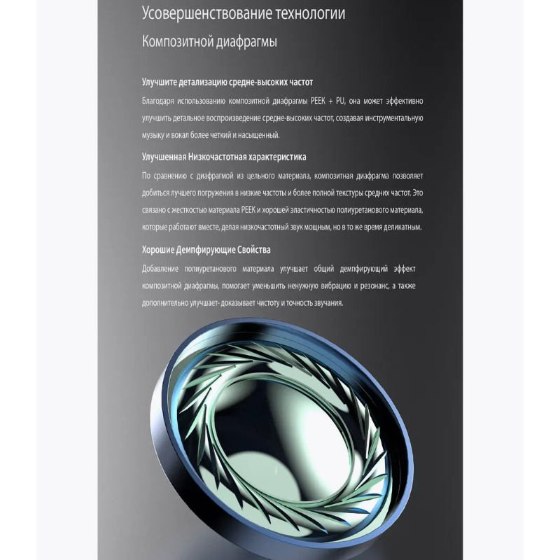 Доп. опции наушниковНаушники гибридного типа, использующие технологию микропланарного драйвера