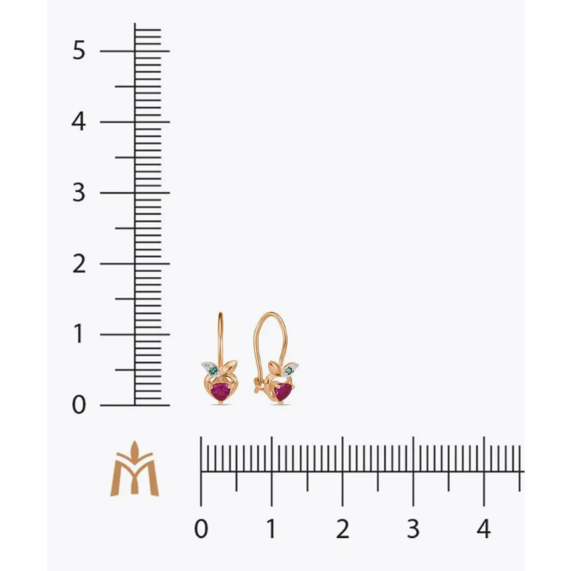 Серьги детские из красного золота с фианитами