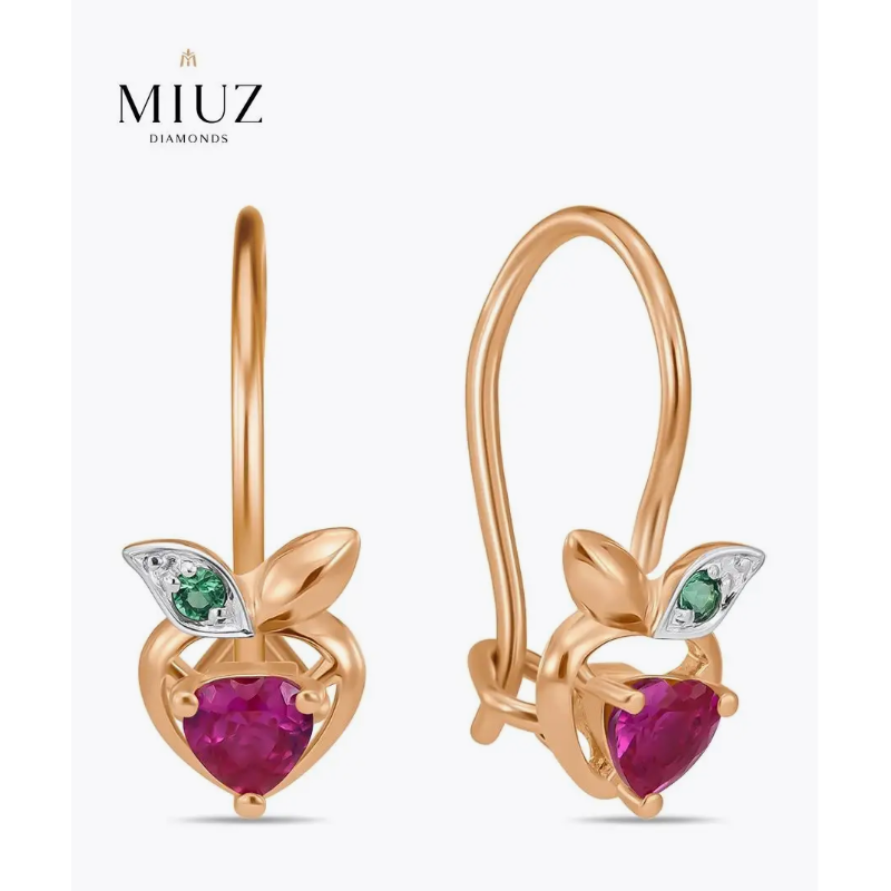 Детские стильные дизайнерские серьги из золота 585 пробы с фианитами пользуются большой популярностью и являются хитом продаж. Характеристики вставок: 2 Фианита огранки "Сердце", 0.36 карат; 2 Фианита огранки "Круглая", 0.03 карат. Золотые сережки отлично подойдут для повседневной носки, эффектно дополнят нарядный, вечерний, праздничный или свадебный образ. Каждое ювелирное украшение MIUZ Diamonds ( Московского Ювелирного завода, МЮЗ ) проходит тройную систему контроля качества, в том числе Российскую Пробирную Палату. Поставляется в фирменной подарочной упаковке.