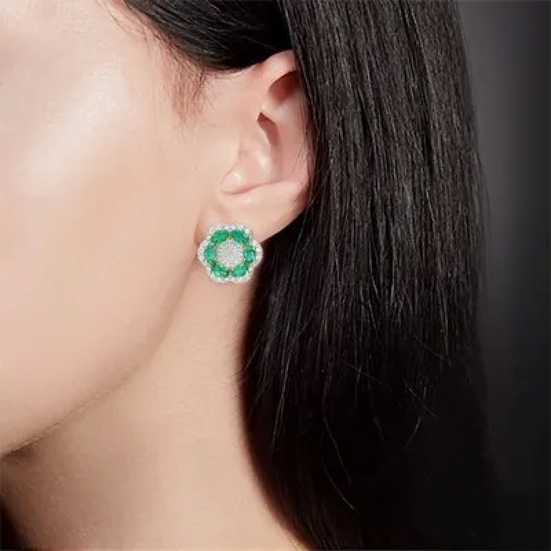 PLATINA Серьги с английским замком из красного золота 585 пробы c изумрудами и бриллиантами